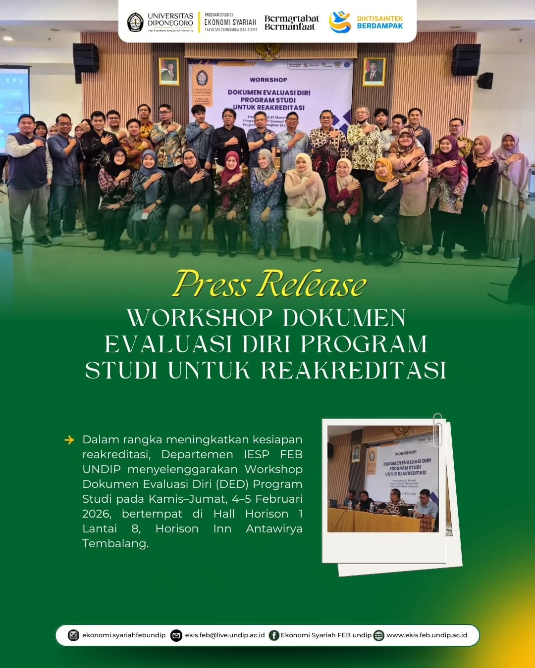 Program Studi Ekonomi Syariah FEB UNDIP Gelar Workshop Dokumen Evaluasi Diri untuk Reakreditasi